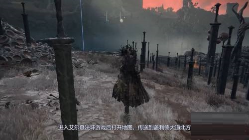 1、进入艾尔登法环游戏后打开地图,传送到盖利德大道北方。