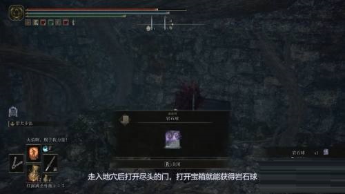3、走入地穴后打开尽头的门,打开宝箱就能获得岩石球。