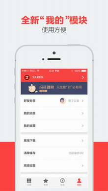 ZAKER是一款优秀的资讯聚合与互动分享阅读软件,拥有资讯、娱乐、科技、财经、汽车、体育、本地新闻等十几个版块,上千条媒体、新媒体、自建频道内容资源。用户可根据个人喜好订阅相应内容,也可通过ZAKER智能推送功能获取自己感兴趣的信息。对于感兴趣的内容,用户可以在ZAKER内直接与好友分享互动,也可以通过微博、微信、QQ、邮件、印象笔记等社交媒体平台将图文分享收藏。